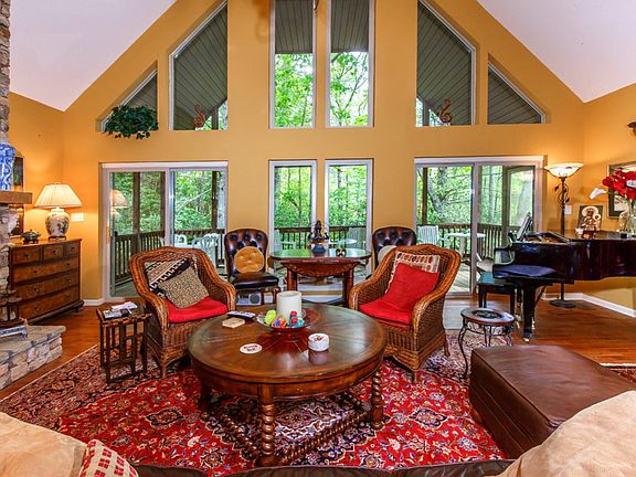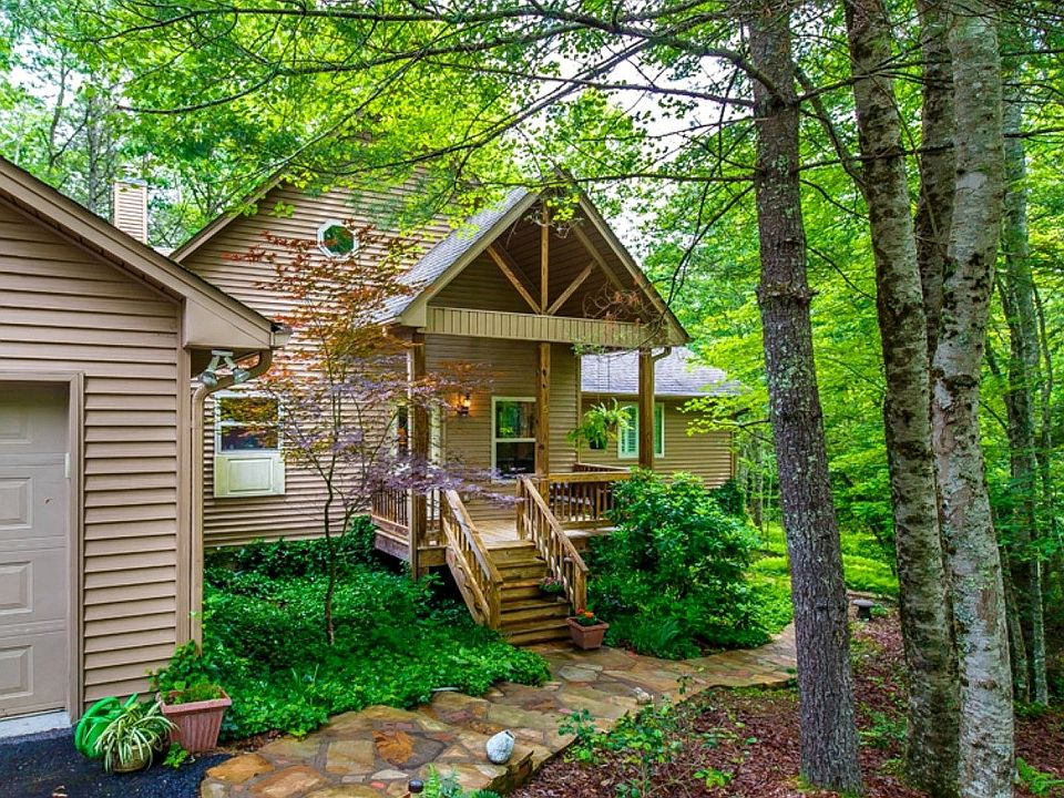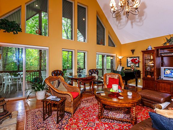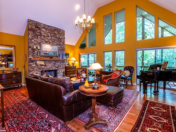 Nicely finished custom home, 3 bedroom, 3 full baths, includes high vaulted ceilings, hardwood floors, custom island kitchen, large owners quarters with adjoining bath garden tub his/hers walk in closets. Great room features stone vented gas log fireplace, lots of glass overlooking rear screened porch, private wooded green space. Split floorplan includes 2 guest bedrooms with full bath. A special bonus space loft above with full bath. Community includes wonderful ammenities, golf, 4 mountain lakes, clubhouse, pool, tennis , pickleball, bocci ball. hiking trails, wellness center. Come see why we love living where we play.