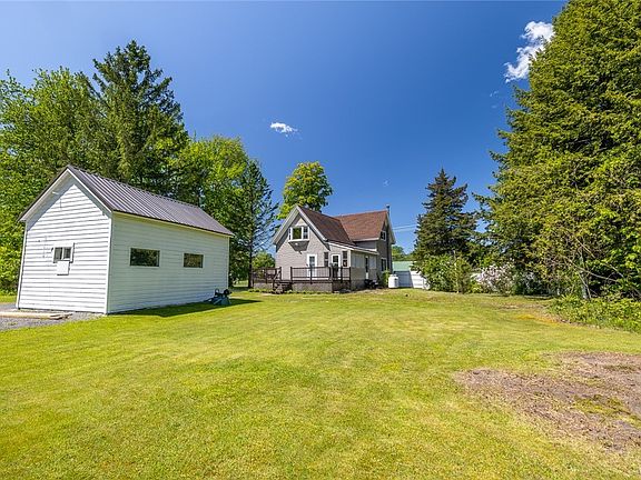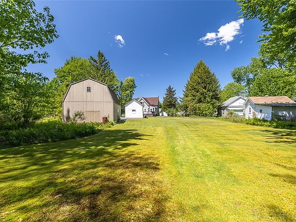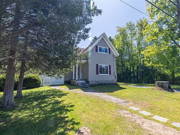 This nicely updated home has so much to offer.  Nestled on a little over an acre, this home has a beautiful light a bright eat-in kitchen with brand new floor, first floor laundry, large family room, charming french doors and hardwood floors in the front living room.  3 spacious bedrooms upstairs with full bathroom.  The welcoming enclosed porch, barn and front porch have new metal roof.  Several new vinyl windows have been installed as well. Enjoy the original historical outbuilding along with 22x32 detached garage with full upstairs area.  Perfect location across the street from a park and walking distance to the lake.  A Must See