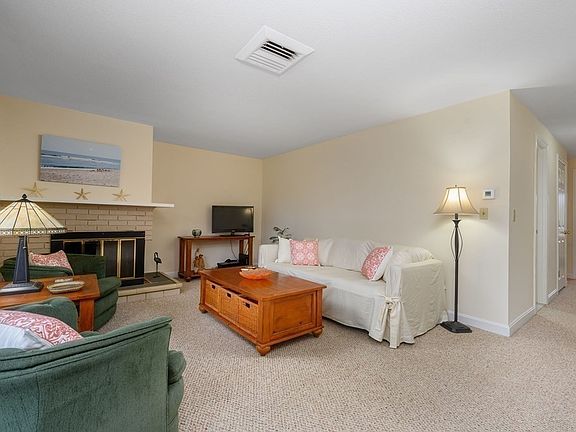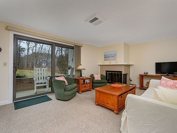 A rare opportunity to enjoy 1 floor living in this ground floor condo with direct entry--no common hallway! A great floor plan! The spacious living room overlooks the backyard with a newer slider that opens to a patio. A good-sized kitchen and dining area are open to the living room. The primary bedroom is en suite and there is a full guest bathroom for the guest bedroom. More features that are hard to find in condos include a foyer, wood-burning fireplace, newer central AC, a huge pantry, outdoor closet, and a laundry inside the unit. Brand new water heater, newer storm door, and much of the interior was recently repainted. So many amenities nearby to facilitate the Cape Cod lifestyle you desire! There is direct access to the bike path right behind the unit, plus an Association pool & community room! Also convenient to restaurants, a gym, shopping, farmers' market, coffee shops, and Skaket Beach! Buyers/agents to confirm all details.