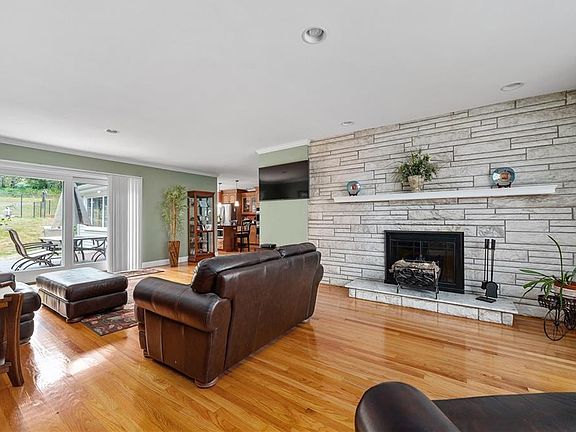 Sprawling impeccable ranch on 1.34 acres. featuring pristine hardwoods throughout. Three bedroom, 2.5 baths, with main level laundry room. Great Room opens to an eat-in-kitchen with center island, looking over a spacious formal dining room. Large deck, with a patio looking over a spacious back yard with in-ground pool. Central air and solar panels that pay most, if not all of your electric bill. Look no further... this home has it all!