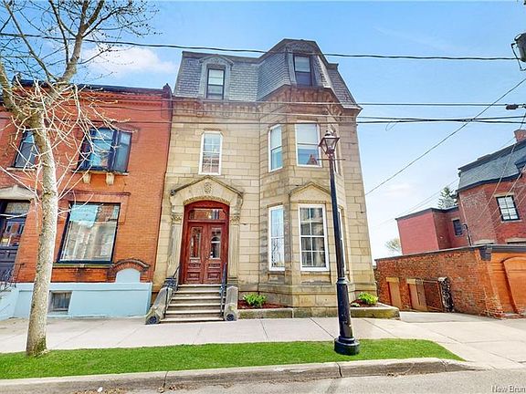 Properties like this define what Saint John New Brunswick is - a house that has stood the test of time - designed & built to last with thought that rarely exists in todays newer generation of housing. This stunning 3 storey brownstone is located on one of the citys most beautiful streets in the uptown Saint John area - featuring off street parking, detached garage & a fenced yard offering privacy rarely found here. Elegant wide stone steps, hand-carved double front doors to a bright foyer with original stained glass & a grand staircase surrounded by intricate woodwork welcome you. The main level offers a timeless double parlour layout with 14ft ceilings, ornate crown mouldings, stag-head chandeliers, brass accented fireplaces & gleaming hardwood floors. Enjoy a spacious & sun-lit kitchen plus a tranquil sunroom overlooking the garden. The 2nd level features a grand primary suite with stone fireplaces, attached office/library with built-ins, an incredible space - additional bedroom with water views & walk-in closet, spacious main bathroom & additional office space. The top floor provides an incredible flex space with views of Orange St in front & the Atlantic ocean behind. The lower level is a bonus suite with its own entrance, kitchen, bathroom. bedroom & sitting room. Walkable access to local cafes, galleries, theatres & a beautiful waterfront walking trail. This property offers endless possibilities from family living to rental income or a home office - call today! (id:41440)