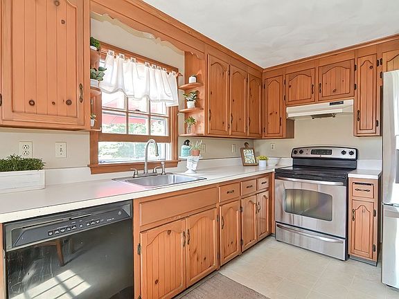 Adorable Raised Cape offering three levels of living space located in a sought-after neighborhood on a cul-de-sac. The main level offers a sun-filled Eat-in-Kitchen, dining room with wainscoting, fireplaced living room w/hardwood floors, full bath and a first-floor bedroom with sliding doors to a deck. Second floor offers three additional bedrooms with overhead lights and ceiling fans. The primary bedroom has two closets (walk-in), Jack and Jill full bathroom, and a charming window seat. The lower level has two additional large rooms, bar area, work out space, laundry room, recessed lights and a walk out basement. Spend summer fun in this amazing backyard on almost an acre of land. The 40+ x 12 deck with two staircases overlooks a spectacular backyard with an above ground pool, large patio area under the deck, 15x10 storage shed, and an underground sprinkler system. Perfect home if you enjoy entertaining. Short distance to Attleboro train station, restaurants, & stores.