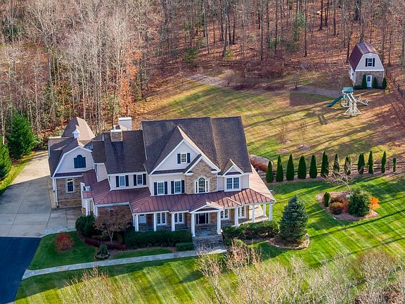 Stunning colonial in sought after Hunters Pond estate community on 3 acres on Cul-de-sac paved road. Enjoy custom luxury details on 3 finished levels, 8000+ SQFT with 6 bedrooms, 6 full baths and 2 half baths. Well thought out floor plan allows for luxury living and entertaining. Four French doors open to a wrap around porch. Light filled home with Gourmet kitchen with Viking cook top, kitchen Island, large pantry. Family room off the kitchen features high coffer ceilings and soaring stone fire place all spilling out to expansive back yard stone patio that features several sitting areas, fire pit, outdoor kitchen, hot tub and room to entertain large groups. Fully fenced rear yard and large storage shed. Fully finished basement include professionally installed media room, bar with wine cooler, fridge, dishwasher and ice maker, newly finished hot sauna room with sitting area, exercise room( equipment conveys). Main level features curved stair and grand foyer and main level bedroom with full bath, 2 half baths, dining, living, office area and laundry area. Upper level master suite features stone wall with gas fireplace with dual tray ceilings, wet bar,expansive master bath with multi nozzle shower system. 4 car over-sized garage with side and rear entry , sprinkler system and large auto - generator to keep you humming if the power goes out!