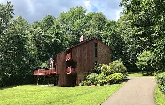 The setting is incredible! Located at the end of a quiet wooded country lane w direct access to acres of conservation land, miles of woodland trails, Sachems Head, Poet Seat, & Highland Park's community clay tennis courts, this intown Greenfield location is both peaceful & private. Inside, the dramatic tongue & groove cathedral ceiling, majestic brick hearth/fireplace & open staircase & balcony set the tone in this pleasing open concept design. Each room has access to the wrap-around decking or an exterior balcony. The renovated kitchen features raised panel cabinetry, granite countertops & stainless appliances. The finished lower level family room, w custom designed bar area & multiple sliders to the open yard is another comfortable spot to hang out or entertain. This home has been loved & well maintained, & recent projects include roof (2016), solar panels (2017) Pella sliding doors (2016/2018) renovated kitchen, & exterior house (2015) & deck (2018) staining. A rare opportunity...