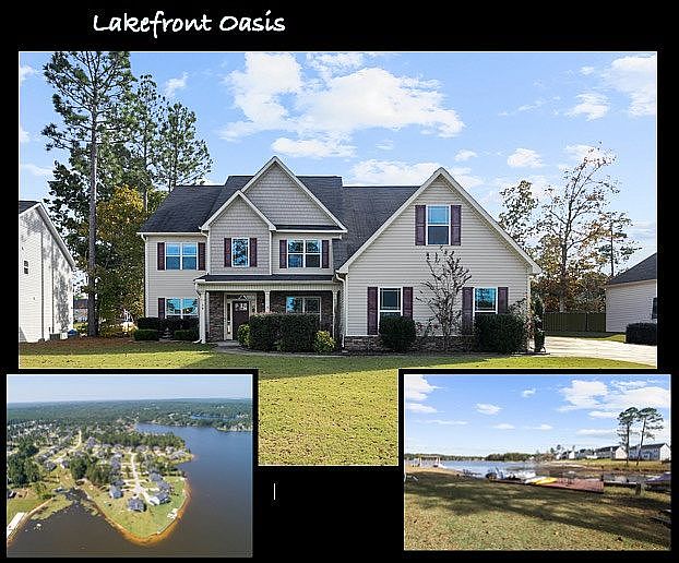 This hard to find waterfront home is now available on the main lake in Carolina Lakes gated community. A one-owner home. This home also provides the convenience of a bedroom with attached full bathroom on the 1st floor. Four more bedrooms upstairs. Master bedroom has an attached sitting room and walk-out balcony. Custom built wood shelving in master closet room. Large private lot provides so much space for outdoor activities & private dock in protected cove (important for boaters) offers a lovely place to park your boat while you relax in this peaceful setting. 3 car garage and SO much driveway parking room! Two well maintained high capacity HVAC units and GeoSpring programmable water heater help keep energy costs low! Also wired for hot tub at back of house.