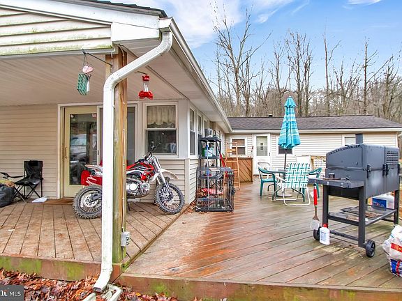 If you're looking for privacy and a beautiful setting look no further. This home sits on 9.7 acres with a stream that you can fish out of and tons of wooded land. The home has 4 bedrooms, 1 full bath, a large deck over looking the property. Additional building on the property was used as a hunting cabin but could be easily finished and made into a workshop/ art studio. Home needs some cosmetics but is worth is when you see the land and view.
