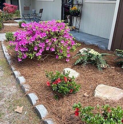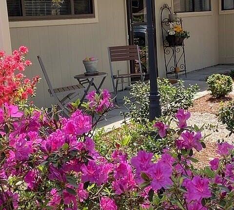 Move-in ready! Clean and pristine end unit on an elevated lot.! Fantastic 2 bedroom, 2 bathroom townhome on the golf course located in the River Bend community. Beautifully landscaped with trees and gardens with paved pathways. Open floor plan with vaulted ceiling in the great room. The master bedroom has a walk-in closet with french doors opening to a stunning sunroom with plenty of windows providing lots of sunshine. The great room has wonderful high ceilings with a gas log fireplace. The kitchen features a solar tube, recessed lighting, custom cabinetry, a backsplash and granite countertops. There are gutters with gutter guards. This end unit is in a flood zone but did not flood during Hurricane Florence 2018. The home was nominated 1 of 10 homes for the River Bend Beautification Award 2023. Refrigerator, washer and dryer convey. A transferable home Warranty with Select Home Warranty,