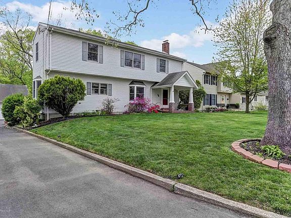 Great home that holds wonderful family memories. Handsome 4/5 bedroom colonial sits on an beautiful full acre lot that offers loads of living space. Location is very convenient to all forms of transportation and shopping. 3 zone HWBB heat serviced by a newer Weil McClain furnace plus separate central air. Huge Living Room has beautiful HW floors w inlays plus wood burning fireplace which adds to this home's charm. HW floors in dining room as well. Nice sized full eat-in-kitchen. Four comfortably sized bedrooms on second level with master suite having master bath boasting jacuzzi tub & stall shower. Finished full, dry basement has family room with wet bar, French drainage system, work room and laundry room. Great home for your growing family.