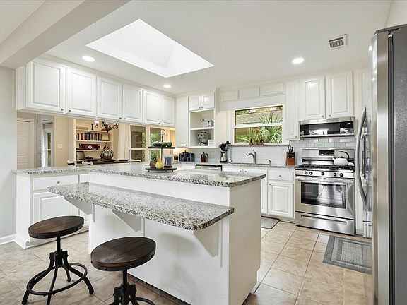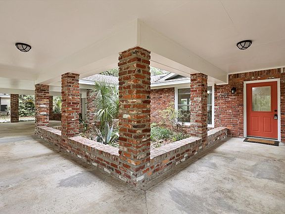 Nestled in the quiet Waterfront Community of Winward Island, this amazing property boasts mature landscaping, majestic oaks, and expansive marshfront and tidal creek views. Captivating and inviting this all brick 3 bedroom, 2 bath home elevates to another level. Wonderful kitchen with white cabinetry, granite counters, stainless steel appliances, gas stove, island, built-in shelving, sitting area and 2 dining spaces. Enjoy cozy hearthside nights by the gas fireplace in the family room. Large brick patio leads to a separate entrance for the guest house with additional bedroom, full bath, living area and well-equipped kitchen, also with gas stove. Additional features include main bedroom retreat, large yard, carport and 3-car garage. Bright and airy with skylights and large windows, this home takes full advantage of that gorgeous view from almost every room. Beautifully renovated with new wood flooring, countertops, tiled showers in all bathrooms, newer roof, HVAC and gas water heater.