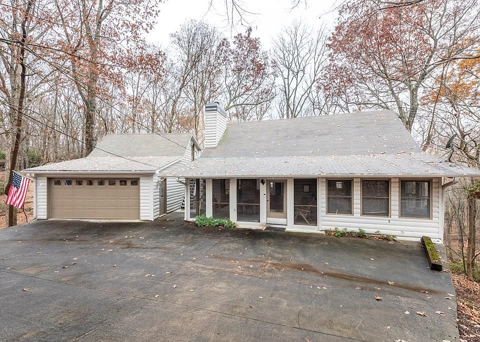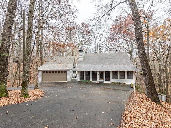 Situated on a .98-acre private lot with 45 feet of Pendley Creek frontage, this LOG cabin offers the perfect blend of rustic character, privacy, and options. Located at the end of a peaceful cul-de-sac, (only one other home on the street) the property features an easy driveway. A screened front porch welcomes you before entering into the cozy great room, where you'll find the gleaming warmth of exposed wood ceilings, walls and floors. Exposed beams and a stacked-stone fireplace set the tone for comfortable cabin living. The great room flows into the dining area and kitchen, creating an open main living space. Adjacent to the dining area is a bright sunroom with glass on three sides, offering beautiful views of woods and wildlife year-round. The main-level primary suite includes a private attached bath. Upstairs, a spacious loft overlooks the natural surroundings, along with a second bedroom suite and full bath. The unfinished lower level, already stubbed for a bathroom, offers excellent potential for additional living space. With windows (the possibility exists to add many more windows in the framed wall areas on all three sides) and walkout access to a concrete patio, it's perfect for storage, a workshop, exercise area, or future expansion of finished living space. A separate third bedroom suite above the two-car garage adds valuable flexibility—as a guest retreat, or a potential rental income opportunity. Key updates and extras include; One-year termite re-treatment and repair bond, Simplisafe security system, Septic tank serviced and pumped in October 2025, Ruud 14 SEER heat pump/AC installed in 2019, Exterior painted in 2024, Additional propane heat from two wall-mounted gas heaters With a little updating, this charming cabin can truly shine—whether as a full-time residence, vacation escape, or investment property. Seller prefers to sell AS IS. Priced accordingly. Come live the mountain life in Bent Tree with access to many amenities.