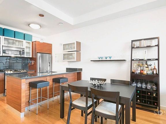 This appealing condo rental at Roebling Square offers a great layout, private balcony, and westward views toward the Empire State Building and Midtown Manhattan. The spacious home sit's at the corner of the complex drawing in ample natural light from two exposures. The unit offers 2 full bathrooms and an open kitchen concept designed with high-profile GE stainless steel appliances, Sapelli wooden cabinets, and Nero Impala black granite backsplash and counter tops. The home is an excellent fit for roommates, while it is most suitable for a couple or individual looking for a unit with adequate space for a child's room, at home workspace, or guest room. Roebling Square is a lovely 36 unit condominium that is pet friendly, well managed and majority owner-occupied. Roebling Square is a boutique condominium, consisted of several townhouse-style, walk-up buildings with a total of 36 units. Residents have access to a communal roof deck with remarkable city views and video security intercom system. The location is in the core of one of the most vibrant neighborhoods in New York City. Access to the L subway line on Bedford Ave (1 stop from Manhattan) is a block away, G line on Metropolitan Ave is 4 blocks East while the NYC Ferry on the waterfront is 5 blocks West. The best of what Williamsburg has to offer including shopping, restaurants, cafes and entertainment are all conveniently at your fingertips.