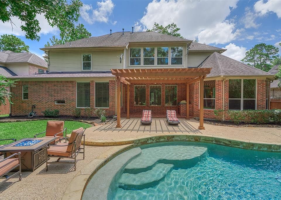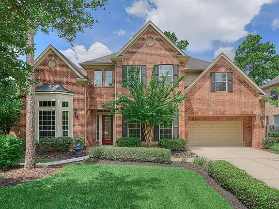 No Rear Neighbors!!! Casement doorways,tray ceilings and crown molding.This home is turnkey with neutral interior paint and carpeting,hardwoods and 16'ceramic tile. Spacious kitchen with glazed cabinets, butler's pantry,granite and stainless steel appliances. Beautiful wrought iron staircase, rear stair case and rich wood paneled study with glass doors and transom window. Great space for the entire family including upstairs media room and separate game room. Spacious master bedroom suite w/ huge closet filled w/shelving and organizational built-ins. You'll enjoy the outdoor living space with pool and water features, built in gas grill and gazebo! Private back yard with no rear neighbors. Community park located at the entrance of the neighborhood. Conveniently located to Market Street and the Cynthia Woods Mitchell Pavillion and the new retail and restaurant developement of 1488 and 2978. Zoned to popular Coulson Tough K-6 school, McCullough Jr.Hi. & TWHS !