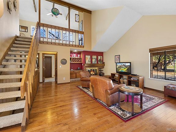 This amazing loft-style home sits on an open space greenbelt and is waiting for you. As you enter you will find the spacious living area with vaulted ceilings. The living room has a gas fireplace, a sink at the wet bar, and built-in shelves. Lots of updated windows throughout the house to bring in the light. As you glance around the space you will see the open staircase which takes you to a spacious loft area that has the convenience of a half bath and wood-burning fireplace. On the main floor, you find the dining area and kitchen with granite countertops. All appliances will stay with the home. Several ceiling fans are in the home and all switches and outlets have been updated. Beautiful updated wood flooring is in the living, dining, kitchen, and hall. You can access a large outdoor patio from the dining area and the master bedroom. The master bedroom has a large walk-in closet and an attached three-quarter bath. The second bedroom and bath are located near the living room and are ready for guests. In the basement, you will find the washer and dryer included in the sale located in the utility space. A large open space can be used for a media room or non-conforming bedroom. The exterior of the home has been updated with Hardy siding on the N/E side of the patio. Where you may enjoy the delightful area to create an oasis getaway. The oversized garage has plenty of room to use for additional storage needs. The Sunridge Patio Home Community amenities include a clubhouse you can rent for entertaining, a swimming pool, a garden area, and local trails The short 12-minute walk to the RTD R-line is convenient for you to commute.
