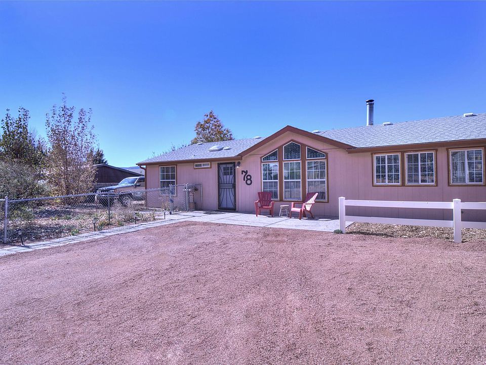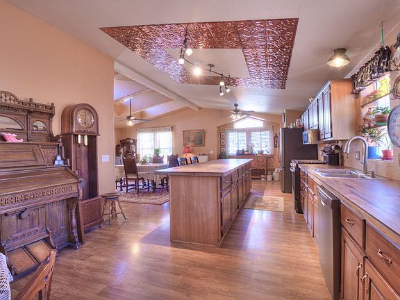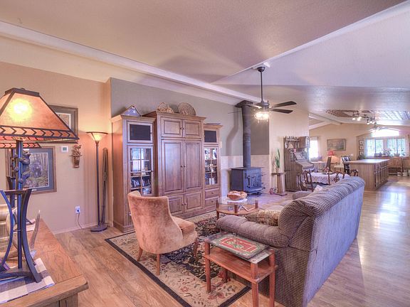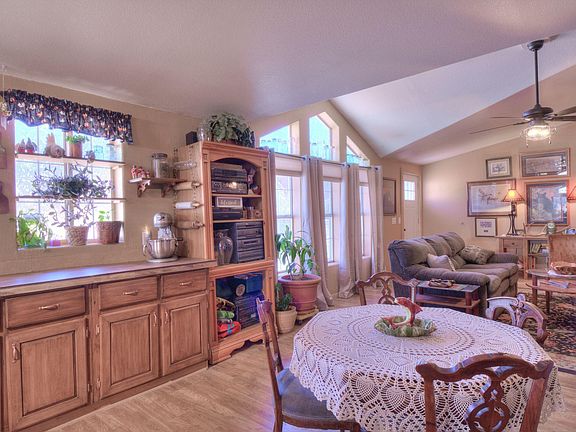 Better check this one out! Spacious 1904 sq.ft. home with vaulted ceiling & a phenomenal kitchen- huge kitchen island! Great for entertaining! Kitchen ceiling displays decorator tin tile surrounding modern tract lighting! So many upgrades! Appliances are newer(2019); 40 gallon hot water heater(2019); 6 ceiling fans(2019) as well as newer atrium entry & security doors! Replaced plumbing in both baths as well as faucets in both baths & Kitchen. Recent installation of new flooring in hall bath. Some updating for new owner yet to do. Sought after open concept & split floor plan. Wonderful lot featuring 7 fruit trees & views. Also a covered patio! Hiking trails near by. Seller motivated!