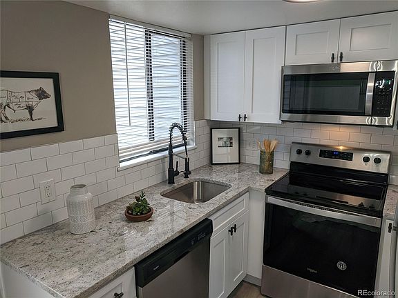 Beautifully remodeled 1BD/1BA Aurora townhome. Step inside and you will instantly feel right at home as you enter to the living room, open and bright with several windows and vaulted ceilings that features a wood-burning fireplace with new tile and wood mantle. The dining room adjoins the patio and the kitchen. Wow! The kitchen has been remodeled and features all new cabinets, new slab granite countertops, new subway tile backsplash, and new stainless steel appliances! Natural light floods into the loft master bedroom, overlooking the living room. You will enjoy the ensuite bathroom that has also been remodeled and features a new vanity, new bathtub, new tile surround, and flooring. There is ample space in the walk-in closet as well. The laundry is located on the lower level with plenty of room for a full-size washer and dryer. This wonderful home features, new interior paint, new tile entry, new laminate flooring, new carpet, remodeled kitchen, remodeled bathroom, etc.! Great central location, short walk to Highline Park and Aurora Hills Golf Course; 4 miles to Anschutz Medical Campus, 2 miles to Town Center of Aurora with numerous dining and shopping options; easy commute with close access I-225 and light rail station.