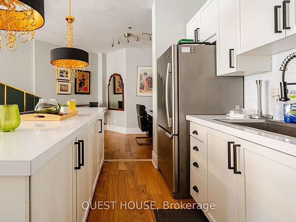 Rare Find - Fully Furnished (also available unfurnished by request) 1-Bedroom loft style with Private Entrance and Garden Terrace! Feels Like a Town House. Discover this truly unique, fully renovated 742 sq. ft. loft-style unit that offers an extraordinary living experience right in the center of it all! With a private entrance, this one-of-a-kind gem eliminates the need for an elevator, offering both privacy and convenience.Step inside and be greeted by the open-concept living space, featuring high ceilings and an abundance of natural light. Thoughtfully furnished with modern, stylish pieces throughout, this unit is move-in ready and perfect for those seeking both comfort and functionality. The space includes a comfortable living area, a cozy dining space, and a fully equipped kitchen with premium appliances all designed with European flair. One of the standout features of this unit is the stunning 250 sq. ft. garden terrace, providing the perfect outdoor retreat in a tranquil, gated courtyard. Whether you're relaxing or entertaining, this space is ideal for unwinding. Plus, the property is BBQ and pet-friendly, making it easy to enjoy life to the fullest with your furry friend by your side.This unit is packed with amenities to elevate your lifestyle. Turn key ready to use: fiber optic interent, cable, heat & hydro etc. Parking is available underground at an additional cost.