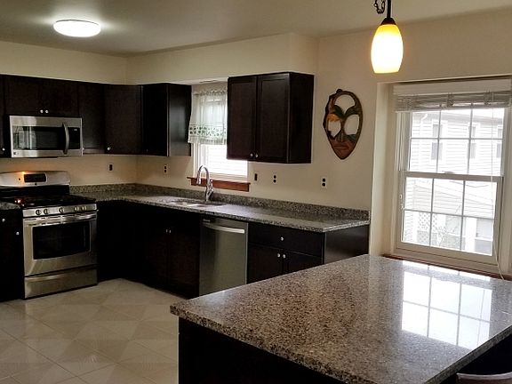 Renovated townhouse with 2 large bedrooms, 2.5 baths & large family room on ground level that can be used as a third bedroom with its own full bath. Garage. Terrace. Laundry inside unit. Open layout.Fully renovated brick townhouse with 2 large bedrooms & large family room on ground level that can be used as a third bedroom or guest suite with its own full bath. First floor has an open layout with an over-sized kitchen, dining room, large living room, powder room & a large terrace. Second floor has 2 large bedrooms, a stunning bath with soaker tub & stand up shower & lots of large closets. This unit also includes brand new washer/dryer, newer Anderson windows, newer cabinets & granite counter tops. One car garage, driveway and plenty street parking. Truly move-in ready. This is a must see.