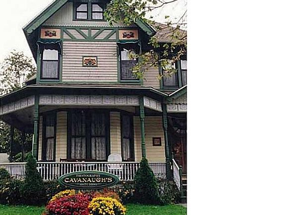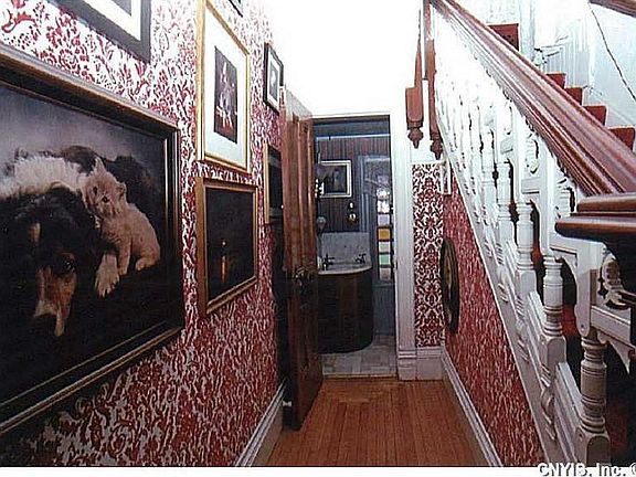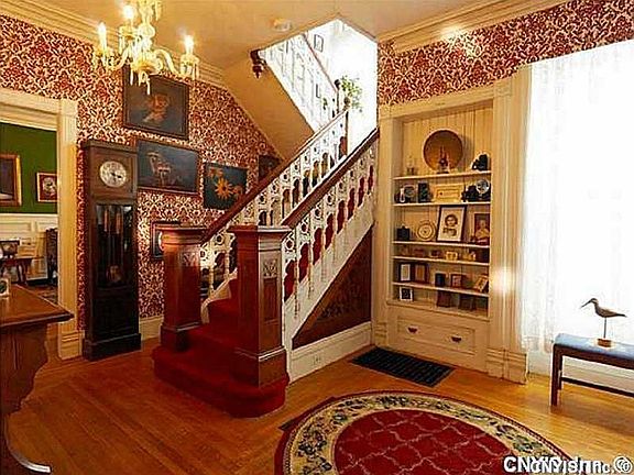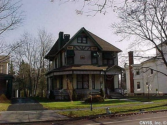 Charming Victorian with wrap around porch features 2 wood fireplaces with decorative tile, inlaid flooring and beautiful original moulding. There is a large 33' x 16' living room , grand foyer with gorgeous carved staircase, pocket doors, stained glass windows and antique marble sink. This historic gem with only 2 owners , the childhood home of Congressman John Taber which was built by Willard Chapel builder James Stout has been preserved and maintained in it's original character .Presently being used as a home with a studio , ownership could be a unique opportunity.