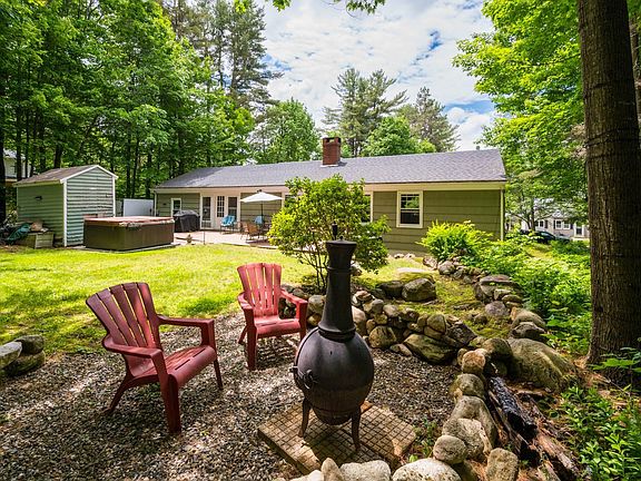 This 3-bedroom, 2-bathroom home offers convenient first-floor living with a spacious living room, a dining room off the kitchen, and a large mudroom between the deck and garage. The secluded back deck provides a space for outdoor activities and enjoying the summer months outside with the hot tub(?) and fire pit. The finished lower level includes a large family room and bathroom. The home is located just minutes from the town center, providing easy access to amenities such as restaurants, bakeries, shops, and a theater. It is also close to several golf courses, beaches, hiking and biking trails, and mountains, offering year-round outdoor activities. The property is near both Pleasant Lake and Little Lake Sunapee, where residents have access to Elkins Beach and Bucklin Beach. Just a short drive to Lake Sunapee, 20 minutes from Mount Sunapee Resort, 30 minutes from Dartmouth Health, and 15 minutes from Sunapee Harbor.