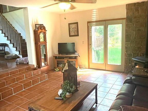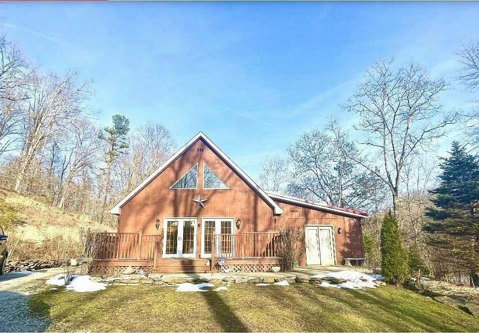 Located less than 6 miles from town, this A frame home offer plenty of privacy. The home sits on a ½ acre with its own private drive and has beautiful T-11 siding, concrete sidewalks, concrete parking space that could easily be converted into a garage or carport area. Large 10x26 front deck, nice back porch to sit and enjoy your morning coffee. The interior of the home has an open concept kitchen/dining room with 26ft ceilings and double French doors leading out to the front deck. The kitchen has a gas Range, cabinets are of top-grade quality and hardwood flooring runs though the main level of the home. The living room has beautiful tile floors and French doors. The home heats with a wood burning stove and a gas fireplace. Master bedroom on the main level w/ doors leading out to the back deck, and a spacious bathroom w/ laundry area. Upper level offers a loft style 2nd bedroom. There is a large storage building with loft space for additional storage. Don’t miss out on this one.
