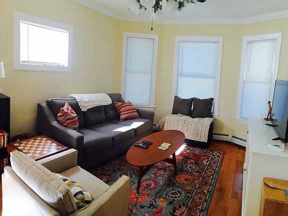 apartment features large/open concept of living room - dining room - kitchen, newly updated kitchen with stainless steel appliances, dishwasher, modern counter-tops and cabinets in kitchen, hardwood floors, private rear deck, shared backyard, washer and dryer in building, gas heat with a new efficient system, large bedroom with walk-in closet
