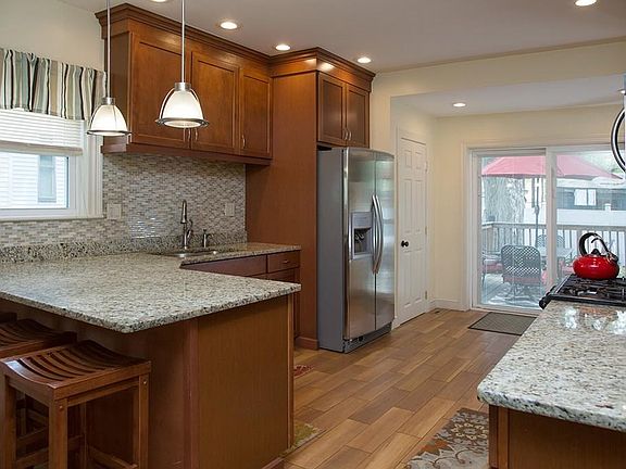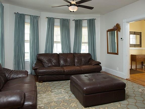 This handsome five bedroom, one and one-half bathroom Victorian-era residence with a welcoming front porch is located close to shops, public transportation, and major commuting routes. Highlights include graciously proportioned rooms, original architectural detail, high ceilings, and wood flooring. The updated kitchen, equipped with stainless steel appliances and granite countertops, has a sliding door leading to the deck overlooking the fenced yard. There is ample closet space. Improvements to the property include central air-conditioning and energy-efficient features.