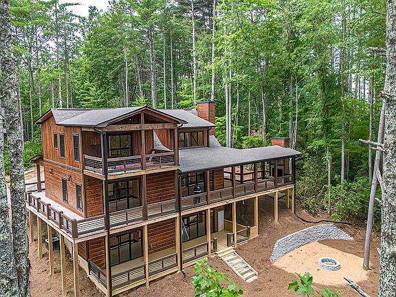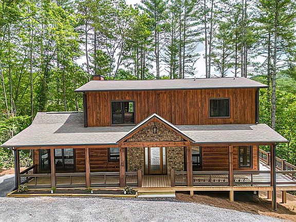 The unique charms of your new modern, rustic cabin will leave you speechless. Perfectly poised on a wooded, seasonal mtn. view lot of 2.00 acres with paved road access to driveway. Open floor plan combines kitchen, dining area, & living room with vaulted ceilings & stacked stone FP, Or open the doors leading to the porch to become a spacious living area with outdoor FP. Details include light/dark wood, granite countertops, & unique light fixtures. Loft area suited for the kiddos! Master suite on main or upper level - entrance to deck, double vanities, separate tub, & stone shower. Private entrance to terrace level with FP, wet bar, & 1BR/BA for guests. Conveniently located between Lake Blue Ridge & Lake Nottely.