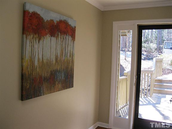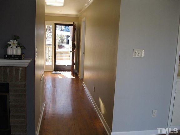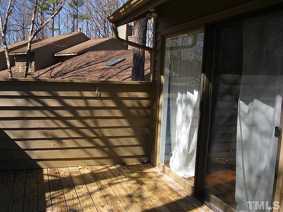 This one-level end unit townhome with hardwood floors & wood-burning fireplace has an amazing view of the woods and loads of decks for outside living. Move right in with all appliances included. Spacious kitchen with breakfast area, two full updated baths, skylights, smooth ceilings, good storage with exterior room and generous closet space. Separate laundry rm has storage cabinets and utility sink. Two parking spaces at the front door. Just mins to Duke, dwntwn Durham, movies, grocery, Target, etc.