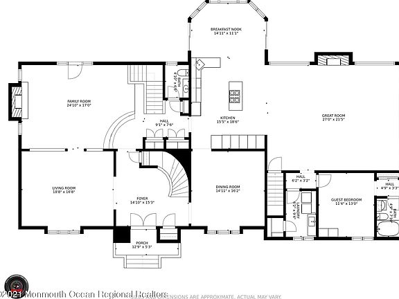 Perfectly appointed custom colonial offering character, space & casual elegance in the heart of Holmdel.Boasting a commanding 2 story foyer, elegant moldings & architecture, hardwood floors & brilliantly flexible floorplan. The sunken Living Rm opens to an inviting Family Rm complete w/gas fireplace & stone surround. A timeless Formal Dining Rm leads to the spacious Gourmet Kitchen complete large center island, and sun-filled eat-in area offering sweeping views of the private grounds. An impressive Great Rm w/tray ceiling opens from the Kitchen & provides picturesque views ofthe outdoors through the expansive windows flanking the 2nd gas fireplace. 1st floor additionally offersa spacious & versatile bedrm & full bath/ in-law suite or perfect for today's work from home/schooling needs Master Bedroom Suite is complete with a walk-in closet & luxurious bath offering double vanities, soaking tub, shower & views of the peaceful backyard. 3 additional generously sized bedrooms and a full hall bath complete the 2nd floor. The outdoor retreat is a true entertainers delight & is complete with a heated/air conditioned cabana, heated, gunite, salt water pool & spa, sport court, 2 tier patio & chef's kitchen. Come live the lifestyle you have dreamed about - all within close proximity to all NYC transportation, iconic Bell Works, MSK & local shopping. 2021-06-07