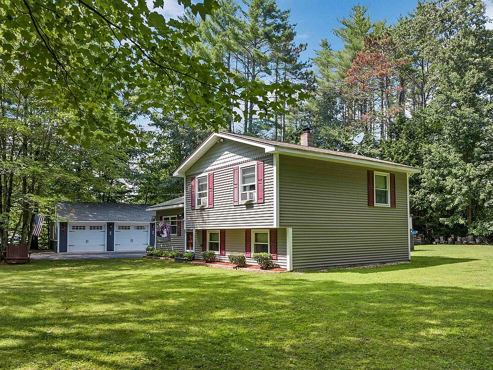 Welcome to 78 Tioga Drive in Belmont, NH—where seclusion meets convenience! Nestled in a peaceful, family-friendly neighborhood, this move-in-ready split-level home offers comfort, functionality, and entertainment. Enjoy New Hampshire living with Lake Winnisquam and Lake Winnipesaukee minutes away, Gunstock Mountain Resort nearby for winter fun, and Tanger Outlets just five miles from your doorstep. Step inside to an open-concept layout featuring a beautifully updated kitchen with quartz countertops, a spacious island, and an adjacent dining area perfect for gatherings. Downstairs, enjoy a cozy living space with a bar, wine chiller, wood stove, and a laundry room with extra storage and a convenient laundry chute. Upstairs, the oversized (8’ x 24’) primary bedroom provides a relaxing retreat and could be converted into a third bedroom if desired. An additional bedroom and a full bath complete the upper level. Storage is plentiful throughout. Outside, the spacious yard is perfect for entertaining, featuring a wraparound porch, an above-ground pool, and a fire pit. The three-bay garage (with a newer roof and siding) includes two electric door openers, ample parking, and extra space for vehicles. The home is generator-ready and has a two-year-old hot water tank for peace of mind. With modern updates, abundant charm, and an unbeatable location, 78 Tioga Drive is ready for you to call home! First showings at open house Saturday 3/8 & Sunday 3/9 10-12.