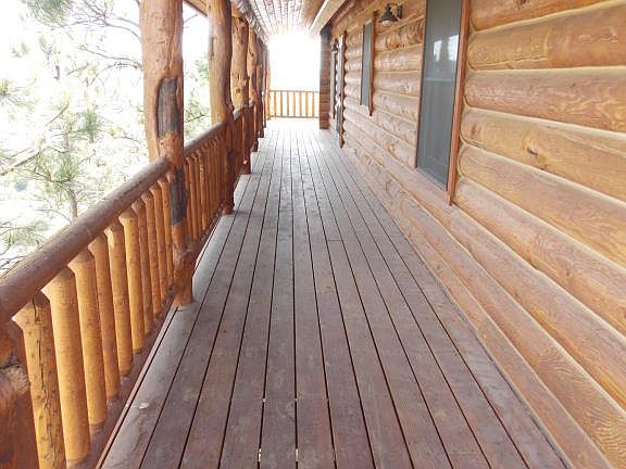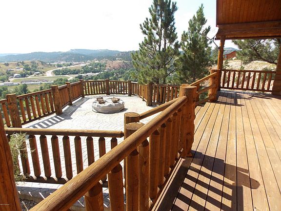 Gorgeous log home on private Golf course above Hulett where membership is required. Large back deck over looks the town with vast views of surrounding scenery, making it a beautiful sunset location and entertaining. This well maintained log home has a spacious layout with upper loft overlooking the living and dining. Large rock fireplace, with wrap around log stair case leading to loft area incorporating 2 spacious bedrooms, bath and sitting area. If you LOVE to golf than this is the community for you!