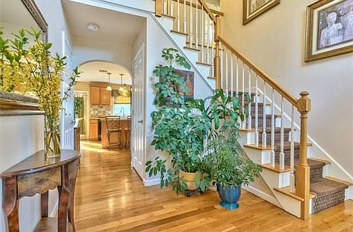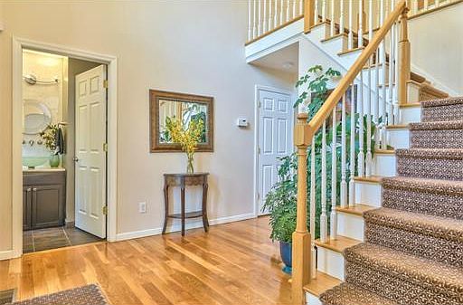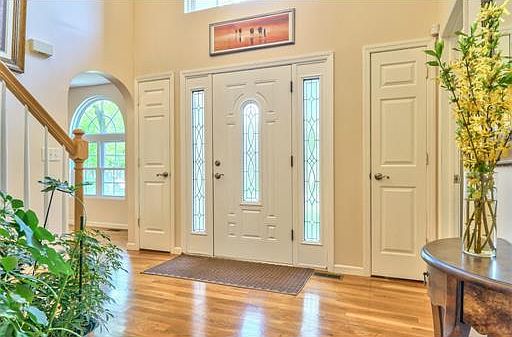 Great for commuting.Custom built home with hardwood flooring throughout 1st floor,oak tread staircase,2 story foyer-Designer Powder Room-Gourmet kitchen w/ gas cooktop, SS Braun vented hood,corian counter tops. Large Owners suite, luxurious master bath, overheight full basement-brick paver patio on .5 acres.. A must see!