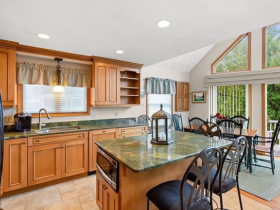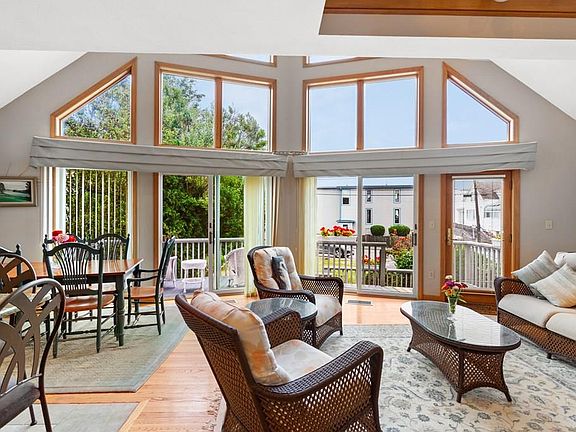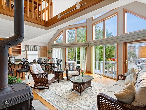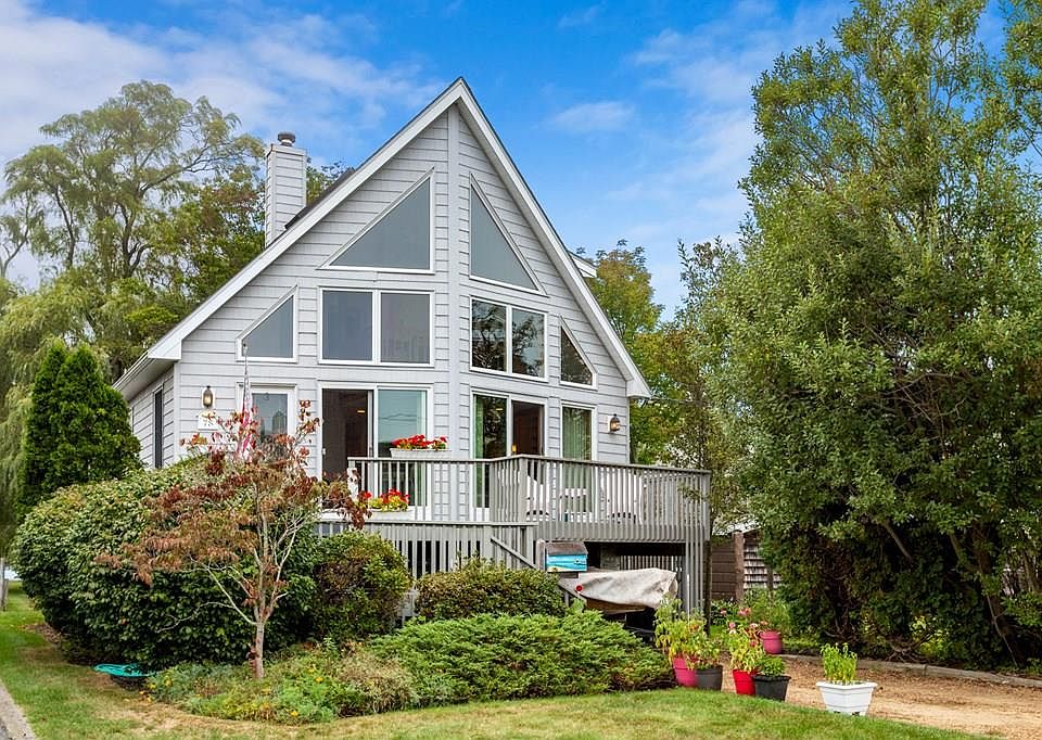 If you are lucky enough to live near the water, you are truly lucky. This beautiful contemporary home near the beach, boating and golf, with water views, on an over-sized lot, certainly fits that saying. It doesn't get much better than this location. This 2 bedroom (possibly 3 bedrooms), 2 full bathroom home (plus a den) features an open concept on the main level and floor to ceiling windows. Glistening water views, an almost constant cooling ocean breeze for those hot summer days, and a wood burning stove to snuggle in front of during the wintertime are some of the wonderful amenities this home has to offer. Enjoy a refreshing drink on the back deck overlooking an expansive yard. At the top of the stairs is a loft that can serve as a perfect home office - an office with an ocean view. You will also find a Master suite with sliders to yet another deck.