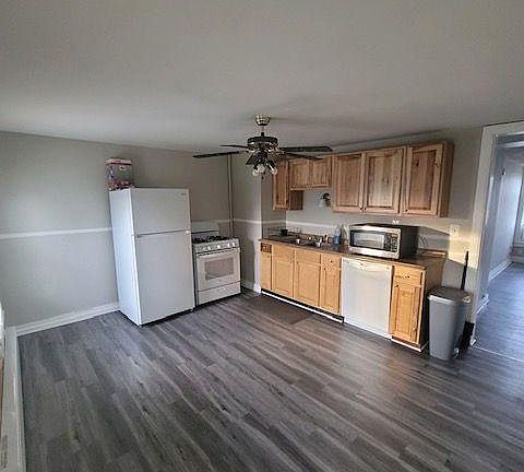 Top floor apartment, clean and fresh Large eat in kitchen with LVT Flooring, Bright living room with LVT Flooring 1 Bedroom with hardwood floors ,Large walk up attic for storage. Rent includes use of shared washer and dryer. Front and Back shared porches to apartment complex to relax with yard space to use. No lawn cutting just enjoy. Owner pays water and trash. Parking on side or front of building