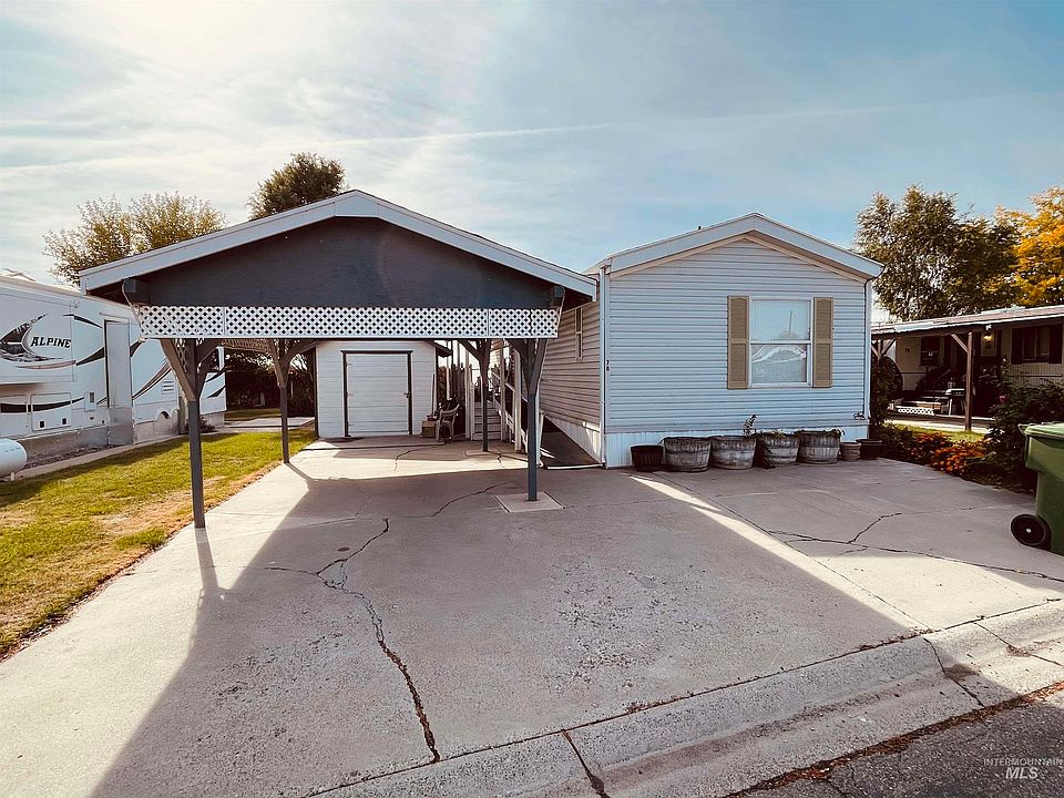 2bd 2 bath 1216 Sq Ft manufactured home with 2 covered decks a 1 Car Carport. Tile countertops in the kitchen with tile backsplash. Home has forced air and a newer electric heat pump and new fridge. includes all appliances and a storage shed. All Contracts Are Contingent on Treasure Valley Mobile Home Village park approval. Located In Treasure Valley Mobile Home Village, A Over 55 Manufactured Home Park and water and sewer are included in monthly space rent.