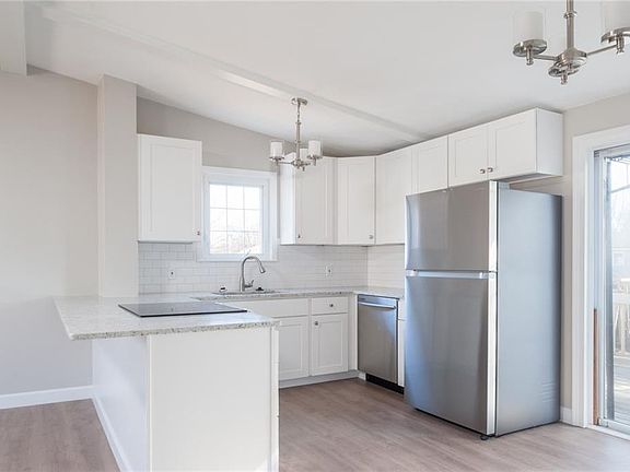 Completely redone Raised Ranch with brand new roof, kitchen, bath, flooring and paint throughout. Open concept kitchen, dining, living area with vaulted ceilings. Glass sliders walk out to large back deck overlooking the spacious, fenced back yard. Two bedrooms up with a potential 3rd down or could be used as additional living space. Walking distance to Oakland Beach waterfront.