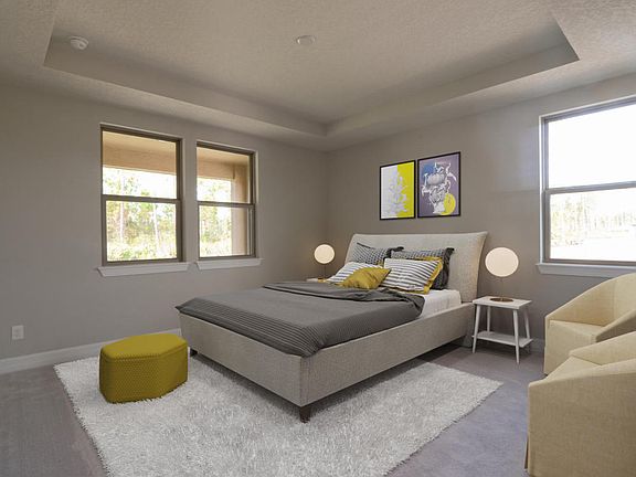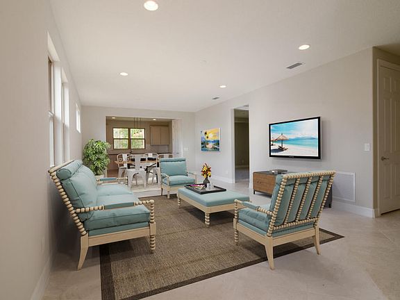 Ready in June!!! 3 Bedroom/3 Bath + OFFICE + LOFT! See it TODAY! Desirable Cul-de-sac LOT! Beautiful Chef's Kitchen-Granite Counters & Dark 42'' Cabinets. Expecting Multiple Offers! Ceramic Tile in Main Living Areas. Private Owner's Retreat w. Spa Like Master Bath. Glass Enclosed Step In Shower. Priced to SELL! Classy Glass Doors in front & back. Covered Paver Lanai & Driveway! Don't miss out! 55+ Community w Resort Style Amenities. Zero Entry Pool, Lap Pool, Tennis Court, Amazing Amenity Center & MORE! Close to World Class Golfing + Growing Dining & Retail. Don't Miss Out! *Options Vary from those Pictured. Home will have Loft, additional bedroom and bathroom not pictured as well*