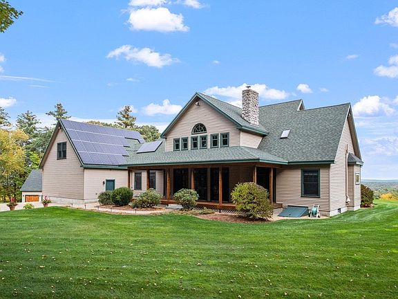 Impeccably maintained and beautifully sited on 21 private acres with panoramic vistas, and backed by an additional 800 acres of conservation land, this home promises an exclusive haven of peace, privacy, and tranquility AND comes with an approved 4 lot sub-division plan. Sustainability meets luxury with state-of-the-art (owned) SOLAR power, DUAL HEATING systems, and LED lighting, ensuring your comfort is always in harmony with the environment. The versatile floor plan offers bedroom suites on both floors and there's plenty of room for all the toys with an oversized two car attached garage plus a detached 3 car with additional space above. Whether you're cozied up by the fireplace, hosting gatherings in the spacious living area or beautifully landscaped yard, or enjoying the sunset from your private deck, this home is a testament to a life well-lived. This is a unique opportunity to own a piece of paradise in the highly desired community of Bow with top rated school system. Shown by appointment only.