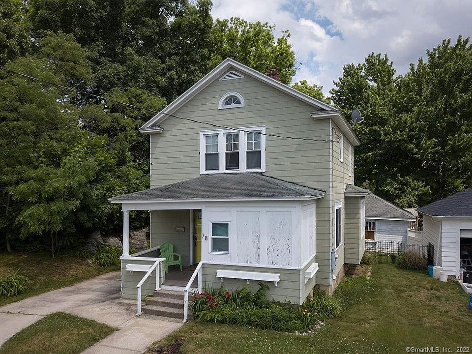 Great opportunity for an investment or to customize to your own desire! The main level features the kitchen with access to the deck for easy entertaining then flows into the dining room and living room. There is also another room that would make a great home office space! Upstairs has 3 good sized bedrooms, all with original hardwoods, and the full bath. Basement has room for storage and a workshop space. Outside is a large deck with a partially fenced yard leading out to a large shed with loft. Property is selling "as is". Come check it out!