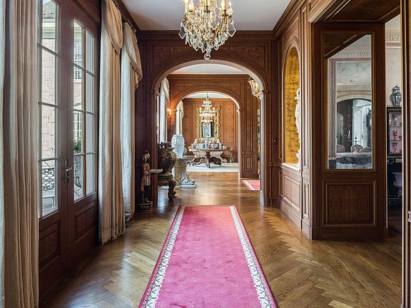 Beautifully sited on 5 rolling acres, this custom stone Georgian designed by Gardiner & Larson is approached by a long, gated driveway. Impeccable style by Michael Simon Interiors, with luxury finishes including exquisite paneling, herringbone floors, custom moldings & antique fireplace surrounds. Gourmet chef's kitchen with breakfast room opens to family room with fireplace. Perfect for grand-scale entertaining, the expansive formal dining room with fireplace opens through a great hall to the formal living room with adjacent sunroom. Stunning master suite with marble fireplace, double walk-in closets & baths. Walk-out lower level features gym, billiard room, playroom, golf simulation room, wine cellar, & pool cabana area.