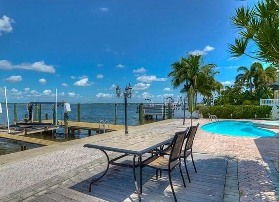 SPECTACULAR WATERFRONT LOCATION AND VIEWS ON BOCA CIEGA BAY!!! Expansive views from the great room, kitchen & master bedroom. Expertly remodeled, home features a great U-shaped kitchen w/lots of granite counter space, raised panel wood cabinets w/crown molding, built-in cabinet pantry & cabinet panels on dishwasher & refrigerator plus five burner stove. Offering a split bedroom plan, the spacious master suite has wood flooring, a stunning view of Boca Ciega Bay, large walk-in closet, full length mirror & master bath w/double pedestal sinks & walk-in shower. Great room features a large brick fireplace, beautiful tile floors, two different seating areas, & a bank of windows overlooking the water. Formal dining room is open to the kitchen & has a picture window. There are two secondary bedrooms one with a built-in desk & the other w/built-in drawers. Study has built-in bookshelves. Wired for sound plus surround sound in study. Step out back and you will feel like you are living in a resort every day. The huge brick pavered patio includes a swimming pool with spa and outdoor bar & kitchen. For the boater and fisherman there is a double dock w/24000 lb boat lift. Often there is 7 ft of water at the dock. Enjoy the good life in your own backyard whether watching the parade of boats from John's Pass & water activities on Boca Ciega Bay, fishing from your dock, taking your own boat on the water or barbecuing while you enjoy swimming in your pool!