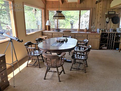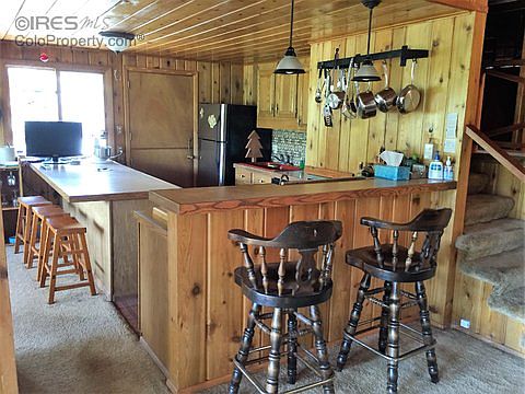 Great Home for Entertaining Friends and Family. Beautiful views from large windows for viewing surrounding mountains. This 3 bedroom, open floor plan with fireplace makes this home perfect for entertaining. Over 800 sq. ft. of a wraparound deck is built around a very large granite boulder which makes this a unique outdoor experience. Knotty pine walls throughout. The infrastructure in Big Elk Meadows is being completely rebuilt and this is an opportunity to watch it come to fruition.