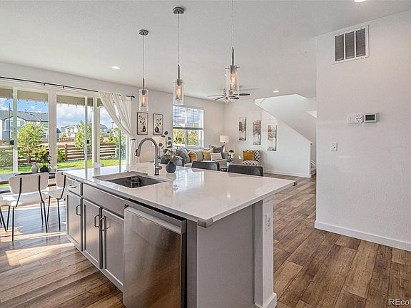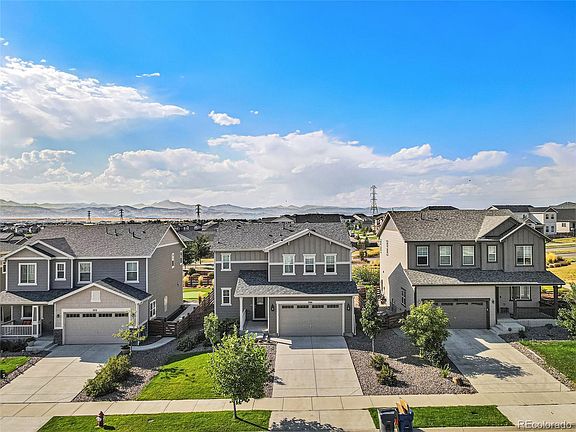 Welcome to your dream oasis with mountain views! This stunning 2-story is located in coveted Colliers Hill and is near the brand new neighborhood pool! The main level boasts LVP flooring, a chefs style kitchen with, eat in island, s/s appliances and great cabinet space. The kitchen overlooks the dining nook and spacious great room. Upstairs hosts your primary suite with ensuite bathroom, walk in closet, 2 additional guest bedrooms, guest full bathroom, spacious loft and your laundry room conveniently located near the bedrooms. Situated on a premium homesite you get majestic views while you enjoy coffee on your rear covered patio. With no one behind you this a rare find in Erie! See everything Erie has to offer with its small town feel, majestic mountain views, 63,000sf community center and 20,000sf community Library!