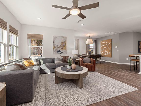 The Bedrock is a one level ranch home. The kitchen features a large island, and many upgraded features such as soft close doors/drawers, roll out trays, and modern single bowl sink. The Owner's Suite is tucked away in a private oasis with en suite bath featuring a tiled 5' shower with seat, and a large WIC. Home will be ready in August. Move in in time to use the community pool! Home located a short walk to trails and amenities.