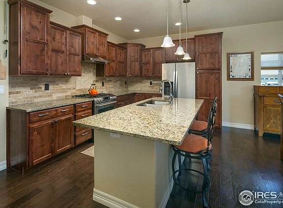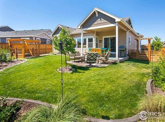 This immaculate east Loveland home in popular Millennium has been meticulously maintained throughout and boasts state-of-the-art high-tech, high-end upgrades. A cheery covered front porch with stone columns is a welcoming prelude to the gorgeous interior. A split floor plan, white painted woodwork, new kitchen w premium appliances, top of the line window coverings, and a retreat-like master suite make main floor living a dream. The finished basement is a true delight with a custom bar, beer taps, game area, and an unparalleled home theater system and accompanying furniture. The 3-car garage has a workshop and a storage lift for maximizing space. Equally amazing is the fully fenced backyard which has raised planters, a massive covered back patio, another flagstone patio with a gas firepit, a pergola and a charming LED party lighting system. PLUS a community pool, fitness center & clubhouse! This is a truly remarkable home that offers a Colorado lifestyle experience you will love.
