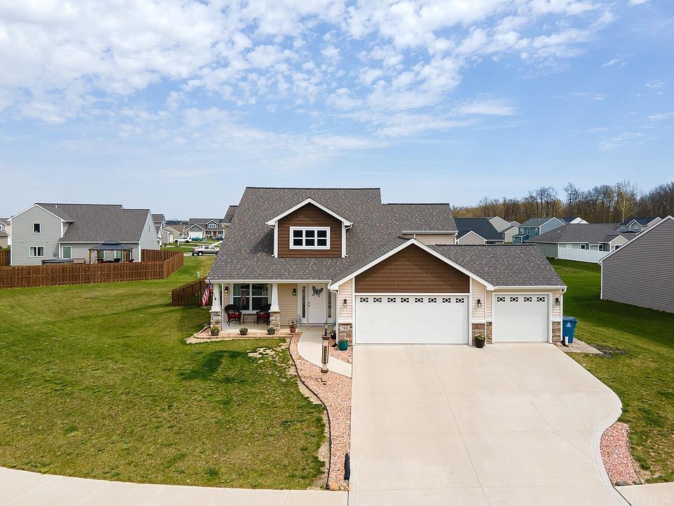 Listed Coming Soon. Showings begin 04/21/2023. OPEN HOUSE 04/21/2023 4:00-6:00. This one has it all; darling curb appeal, SWACS, just under a 1/2 acre, fenced yard, covered relaxation porch, 3 car garage and main floor master! You will love living in this Aboite, open concept, 1.5 story with an cathedral (oversized) great room.Painted woodwork and 6 panel doors. Enjoy cooking with an abundance of cabinetry, breakfast bar, pantry, granite counters, stone backsplash and stainless appliances (not warranted). Plus washer and dryer remain in the walk in laundry room. Convenient main floor primary en suite with walk in closet. the upper level has 2 additional bedrooms, full bath and a multipurpose loft (perfect for den, toy room or 2nd family room space.