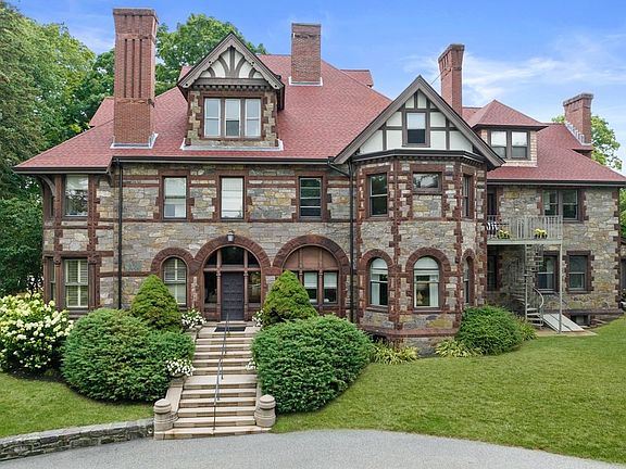 Fabulous 3 bedroom, 2.5 bath condo, rich in history and design and proudly located just outside of Newton Center! Outstanding architectural detail throughout, soaring ceilings and an abundance of natural light in this stunning 2,652 square foot unit in a grand puddingstone mansion - set on a well-manicured 1.38 acre lot at The Prescott Estate. Comfortable yet modern, the light and bright open floor plan is ideal for entertaining, offering a spacious living room with wood burning fireplace leading to a formal dining room with private deck access and a wonderful cook's kitchen with breakfast nook. A media room, with built-ins, wet bar and f/p, and a powder room complete the first floor. 2nd floor offers a spectacular ensuite primary, a 2nd bedroom, full bath and laundry. Bonus 3rd level hosts the 3rd bedroom/flex space. One garage space, 1 outdoor + guest parking. Abundant basement level storage. Convenient to shopping, restaurants, public transportation, schools and major highways.