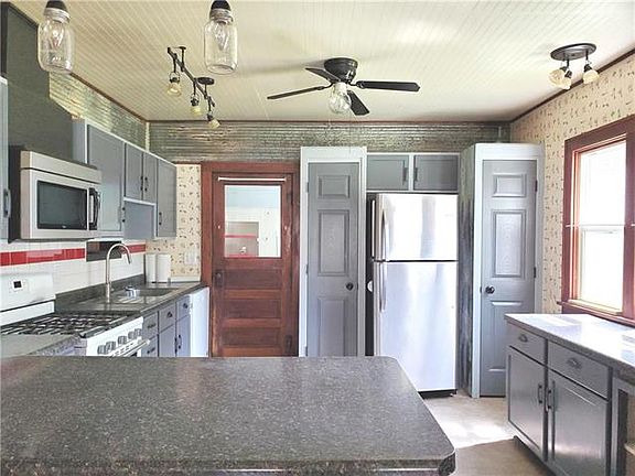 If small town living is what you want, this is an ideal home for you! Sitting on 4 city lots, this darling 2 Bedroom home boasts lots of updates & improvements. Updated electric, plumbing, original hardwood floors, solid wood doors and appliances stay. Remodeled bathroom features heated floors. Living room includes wood burning stove that can heat the home, baseboard heat & propane heat as well. Large walk in closet between bedrooms. Large yard has area for garden, well for water & garden shed.