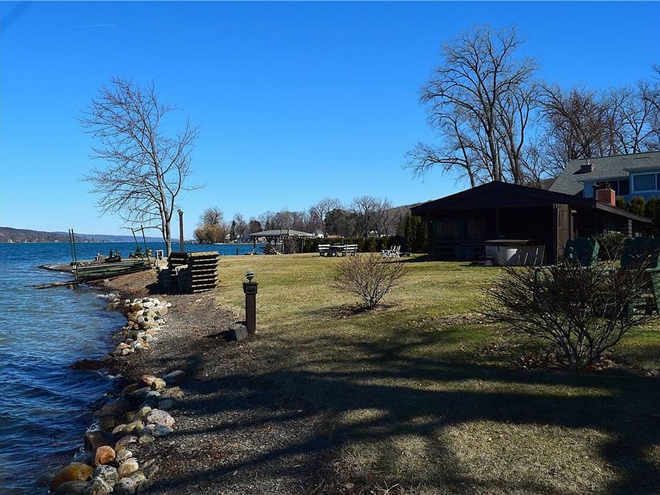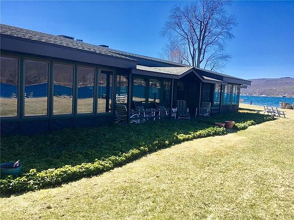 Enjoy spectacular panoramic Keuka lake views surrounding the interior of this home with 229+ feet of lake frontage on a quiet cul-de-sac less than 10 minutes from town. Live the cabin lifestyle or make plans to build your dream home while collecting $4300 per week of vacation rental income on Keuka lake during peak season. This year round rental property is turn-key, comes furnished, includes a charming bunk house that sleeps 6, outdoor kitchen/bar, Jacuzzi and fire pit. Peak season showing times will be from 11-2pm only. Rental history available.