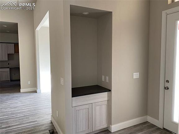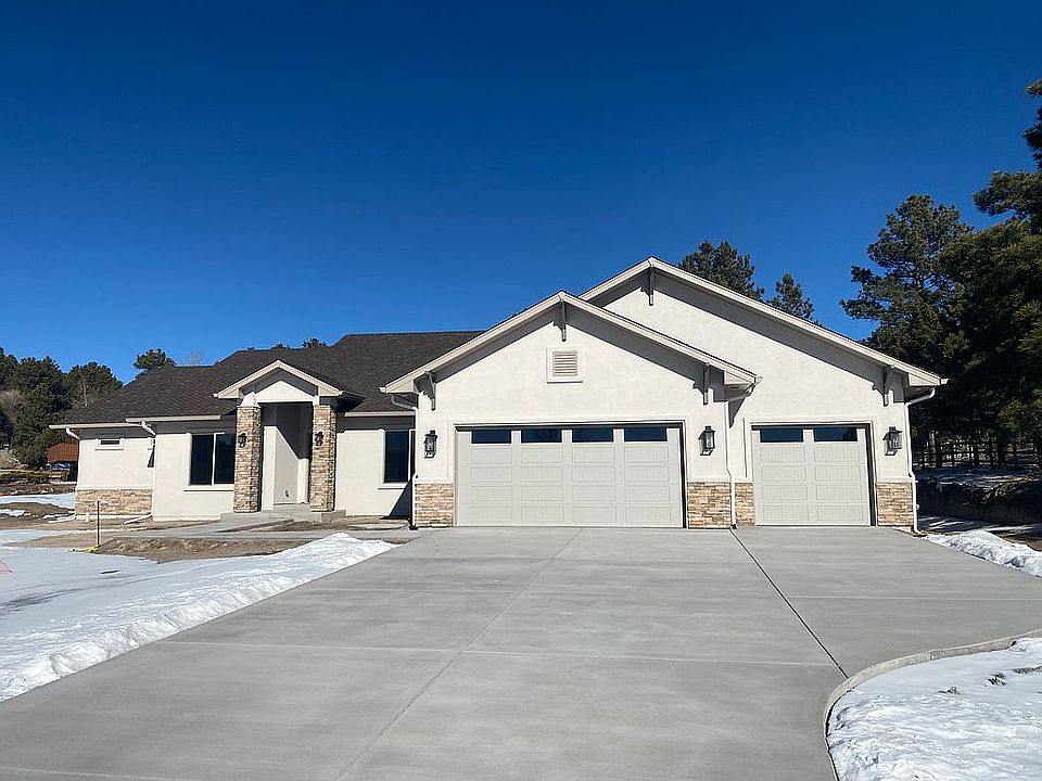 Looking to downsize to one level living? Here is an incredible new house that backs to the Woodmoor Country Club golf course. You will find beautiful low maintenance Coretec flooring that continues from the entry throughout all the hallways, the great room, the dining room, and the kitchen. The kitchen is open in design and includes gorgeous soft close cabinetry with 42" uppers, stainless steel appliances with double oven and gas 6 burner cook top, pull out spice rack and trash bin, pantry detail, Quartz counter tops, a spacious island, decorative tile back splash, under cabinet lighting, commercial grade hood vent, and modern can lighting. In the generously sized great room there are 12' tall ceilings, a 12' wide sliding glass door that walks out to the covered patio, and a gas fireplace with floor to ceiling slate detail. There is a coffee bar with dedicated water line in the hall way that leads to the master bedroom. The master bedroom is spacious and has private access to the covered back patio. Start your day in the luxurious master bathroom with double vanities, private water closet, porcelain tile flooring, and spa shower. The walk in closet is 13' x 14' and has access to the laundry area. In the laundry room you will find more cabinetry, a utility sink, quartz counter tops, and enough space to dance around as you complete your favorite task of the day. Completely separated from the master bedroom on the other side of the home, you will find 3 more spacious bedrooms, all with walk in closets, to include a junior suite with private bathroom. This home has 10' ceilings throughout, solid 8' doors, hand troweled texture, and has been meticulously crafted. The garage is fully finished and includes a 220v outlet, hot and cold water spigot, commercial jack shaft garage door openers, and is close to 1,100 square feet in size. This home is minutes away from schools, shopping, parks & trails, and is a quick drive to the interstate. Set your private showing today!